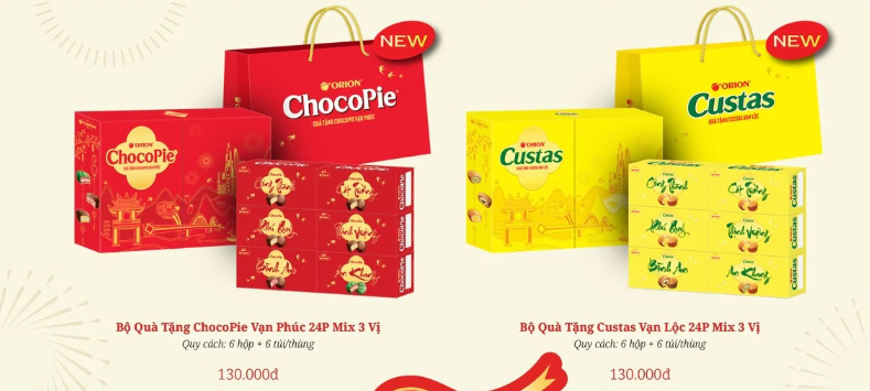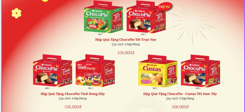 - Sản phẩm: Hộp Quà Tặng ChocoPie, Custas, Opera, và Goute (đồng giá 99.000 VNĐ/hộp)