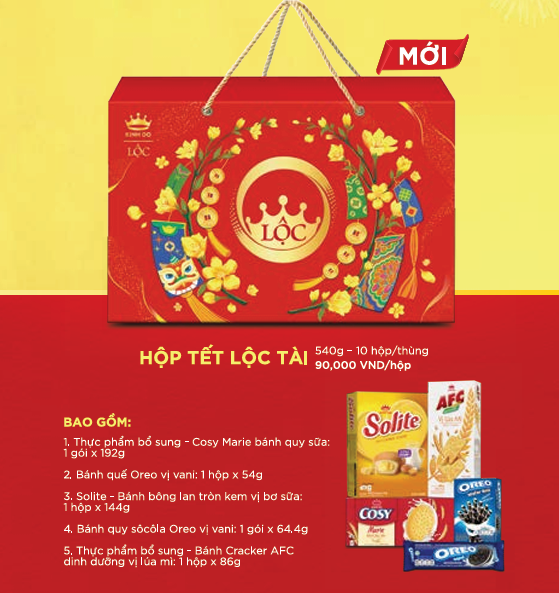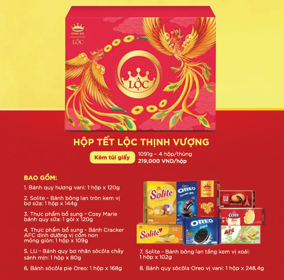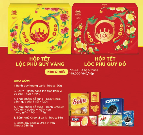 Bộ Quà Tặng Tết Kinh Đô Lộc Phú Quý (2 màu đỏ và vàng) điển hình bao gồm: